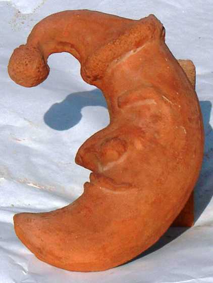 Formella di luna in cotto rosso per decorazioni e decoupage