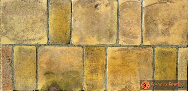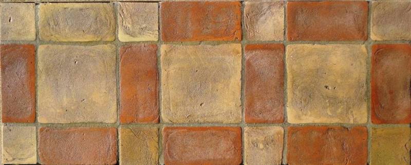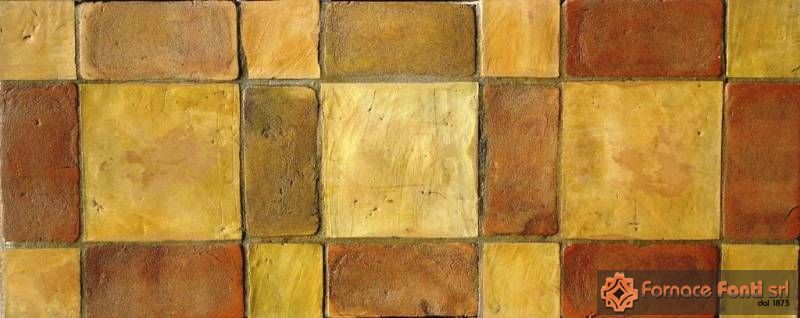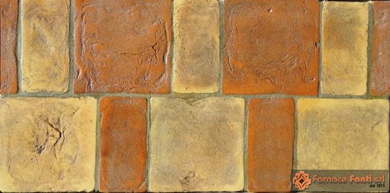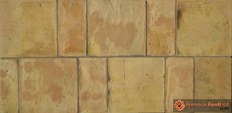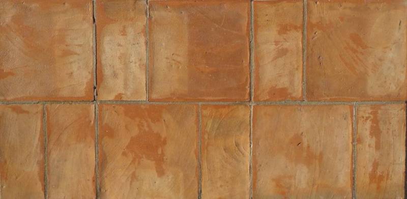 Pavimento esclusivo, in tavella quadrata rossa e rettangolare rossa con finitura rustica.