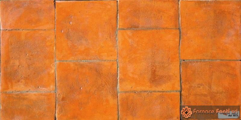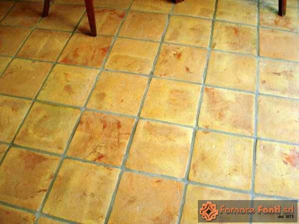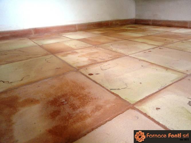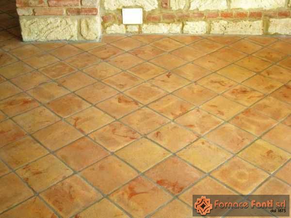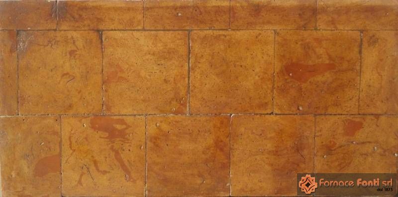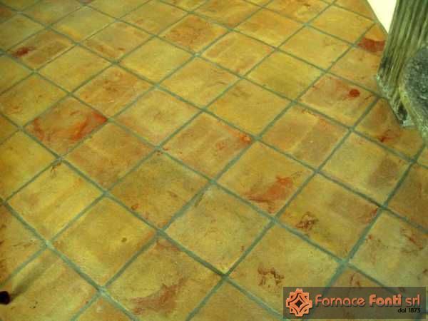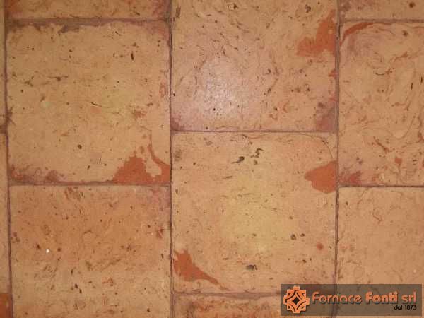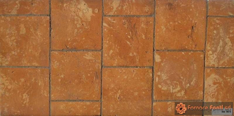 Pavimento in tavella quadra con possibilità di venature colorate; stonalizzato, cotto a carbone.