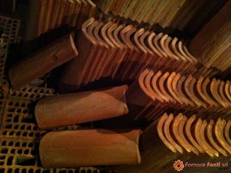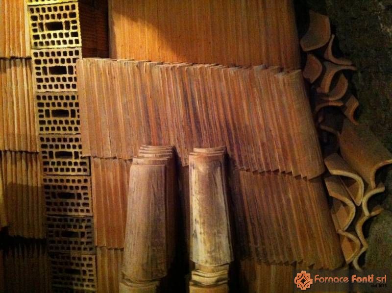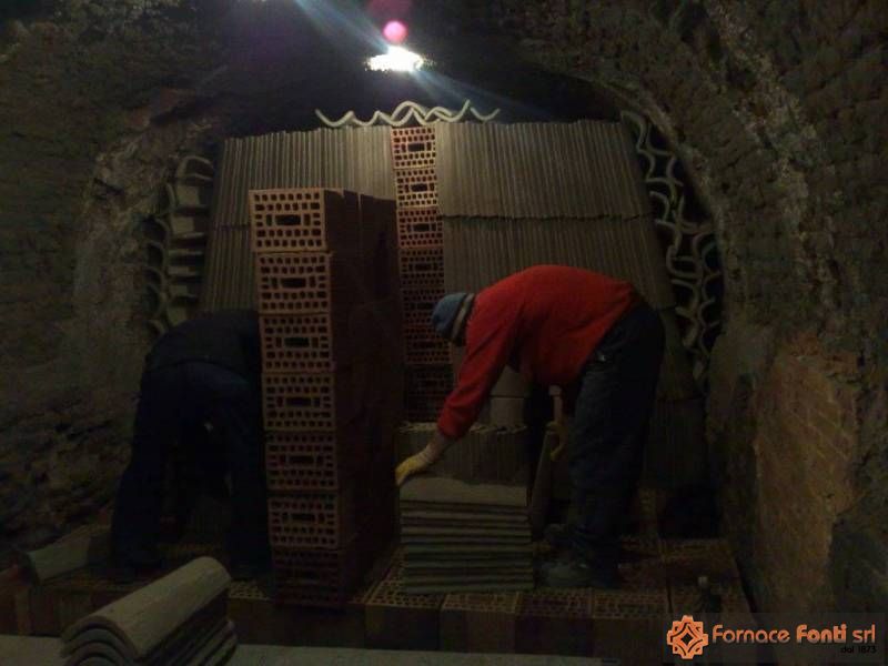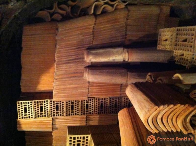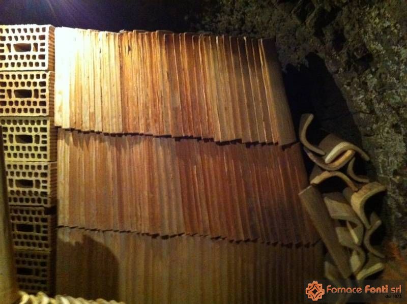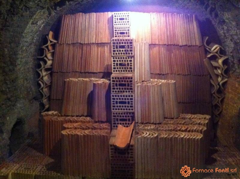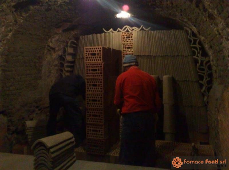 Nelle foto allegate potete vedere particolari di carico a mano del nostro forno Hoffmann datato 1873 (dove si riconoscono i coppi ancora crudi dal colore grigio/verdastro della terra) e di successivo scarico dove il materiale ha acquisito le caratteristiche sfumature della cottura a carbone.